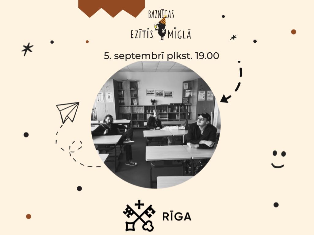 Fonā aiz teksta attēlota Rīgas pilsēta naktī, skatoties no putna lidojuma.