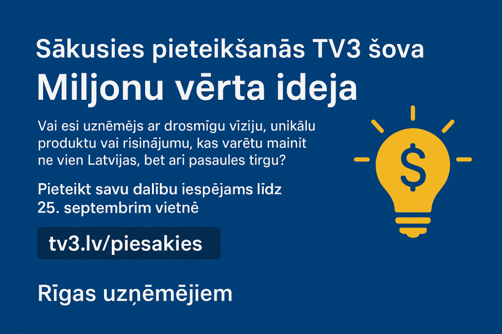 TV3 šovs “Miljonu vērta ideja” atgriežas ar jaunu sezonu, aicinot uzņēmējus un ideju autorus pieteikt savus projektus un sacensties par iespēju iegūt 20 000 eiro sava biznesa attīstībai.