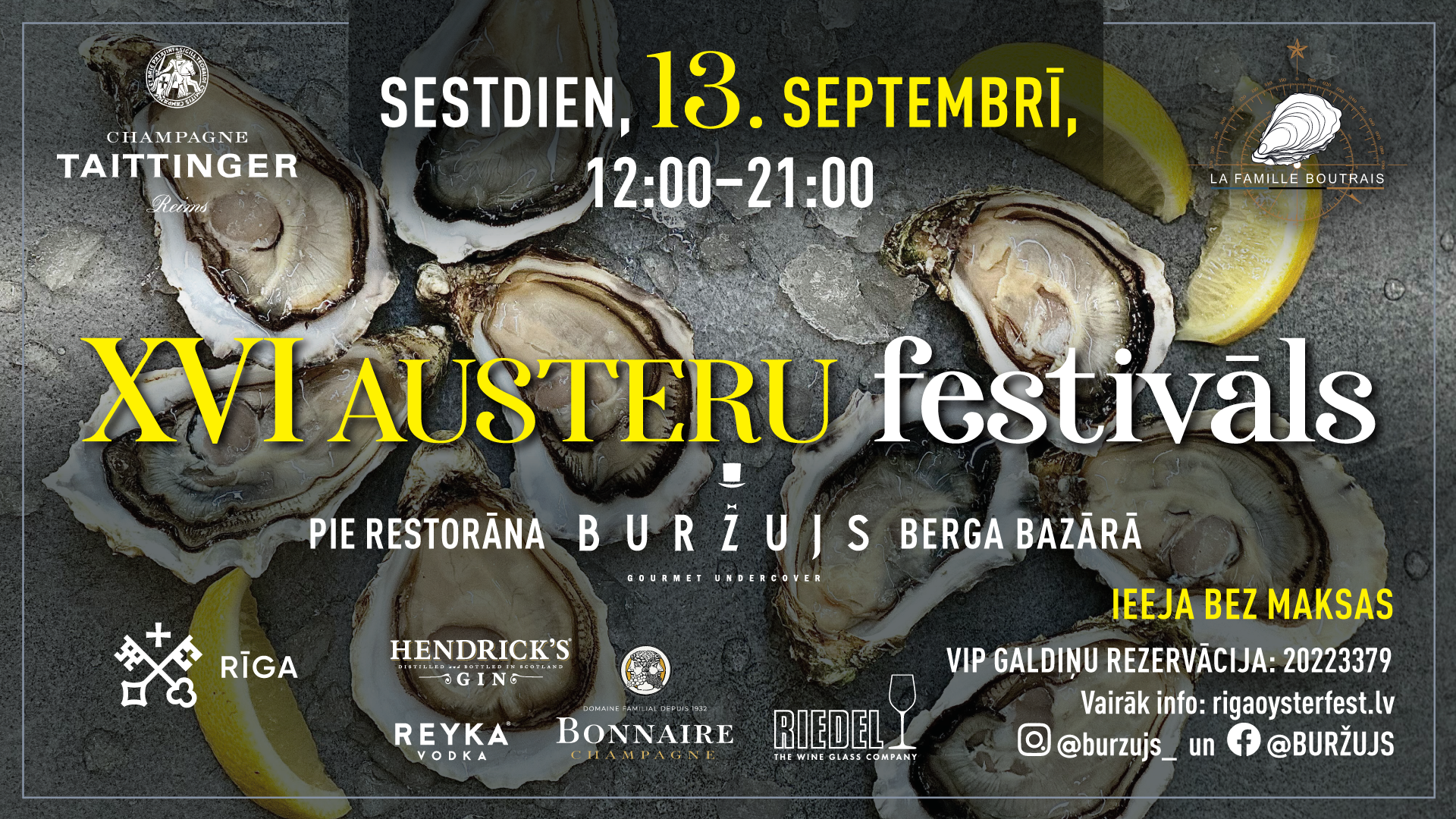 Pasākums tiek īstenots ar Rīgas pašvaldības finansiālo atbalstu. Plašāka informācija par festivālu, tā programmu un piedāvājumiem pieejama mājas lapā rigaoysterfest.lv.